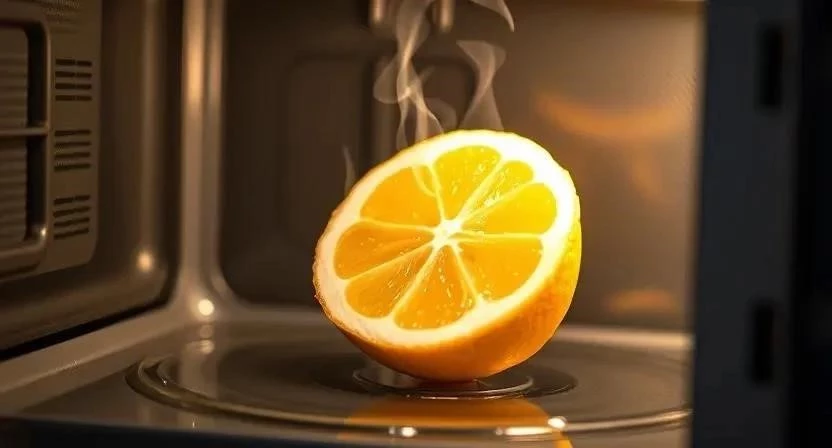 Лимон – это отличное натуральное средство для чистки и дезодорации микроволновки. Разрежьте лимон пополам и выжмите сок в емкость. Добавьте 1 стакан воды и поставьте в микроволновку на 5-7 минут на максимальную мощность. Пар, насыщенный лимонным соком, размягчит загрязнения и устранит неприятные запахи. После этого аккуратно достаньте емкость и протрите внутреннюю поверхность микроволновки влажной тряпкой. Лимонный сок обладает антибактериальными свойствами и придаст микроволновке приятный свежий аромат. Однажды я забыла про лимон в микроволновке на 10 минут, и запах был просто невероятный!