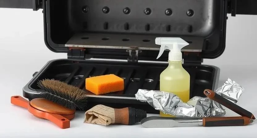 - Бытовая химия: Специализированные средства для чистки грилей, обезжириватели, средства для удаления нагара.