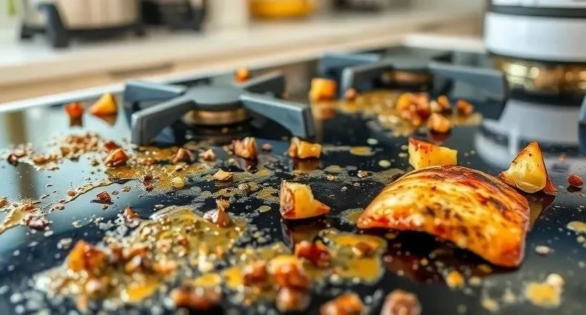 - Как предотвратить появление жирных пятен на плите? Регулярно протирайте плиту после каждого приготовления пищи.