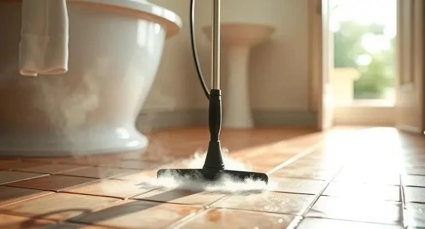 - Чтобы очистить швы между плитками, используйте щетку с жесткой щетиной и пар.