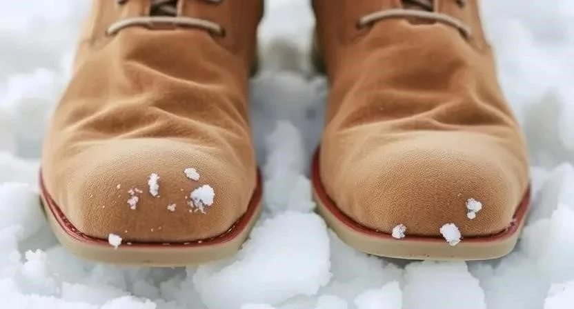 Соль – настоящий враг замшевой обуви, особенно зимой. Чтобы удалить соль, смешайте воду с уксусом (1:1) и аккуратно протрите загрязненные участки. Затем протрите обувь чистой влажной тканью и дайте ей высохнуть.
