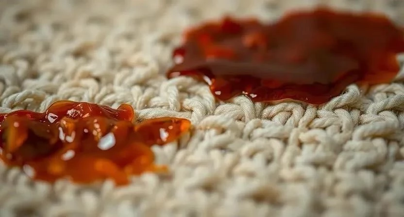 Некоторые соусы, такие как томатный, соевый или барбекю, особенно коварны. Они содержат красящие вещества и жиры, которые быстро впитываются в ворс ковра, делая пятно более стойким. Чем дольше пятно остается на ковре, тем сложнее его удалить. Особенно проблемными являются соусы с высоким содержанием сахара, так как они при высыхании становятся липкими и притягивают пыль.