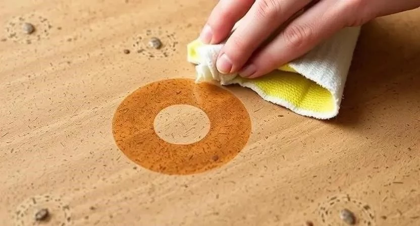 Как удалить старые пятна с пробкового покрытия? Используйте специализированные средства для удаления пятен с пробкового пола.