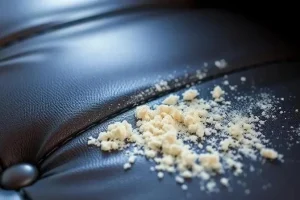 Ответ: Используйте специализированный очиститель для обивки или обратитесь в химчистку.