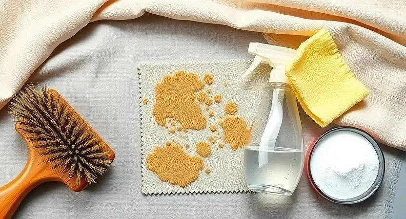 | Уксус (9%) | Удаление пятен от напитков и жира | Смешать с водой в пропорции 1:1, нанести на пятно, протереть влажной тканью | 5 минут |