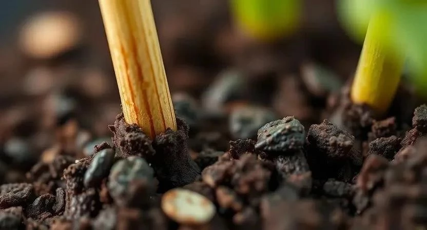 2. Аккуратно воткните палочку в землю на глубину примерно 2-3 см, вблизи стебля растения.