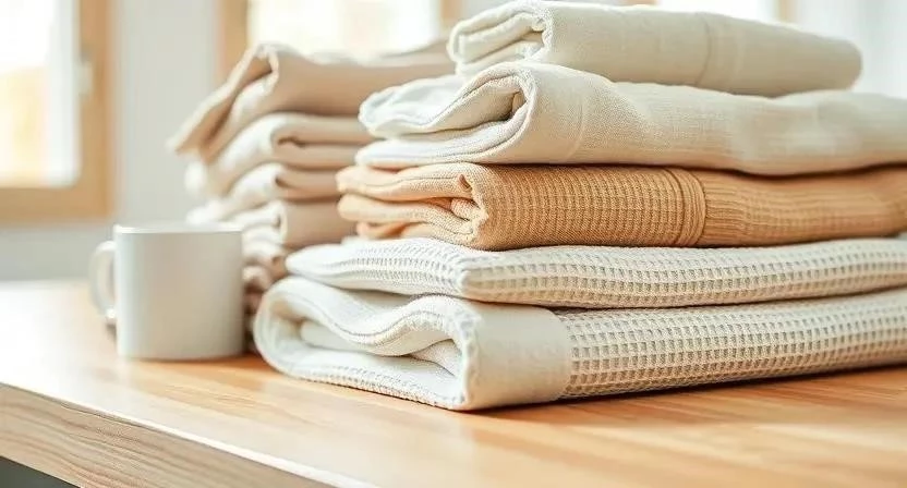 - Вафельное полотно: Быстро сохнет, можно стирать при 40-60°C, не требует глажки.