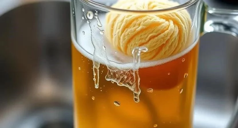 - Удалите остатки пива. Если они свежие, просто вылейте их. Если пиво застыло, замочите кружку в теплой воде на 15-20 минут.
