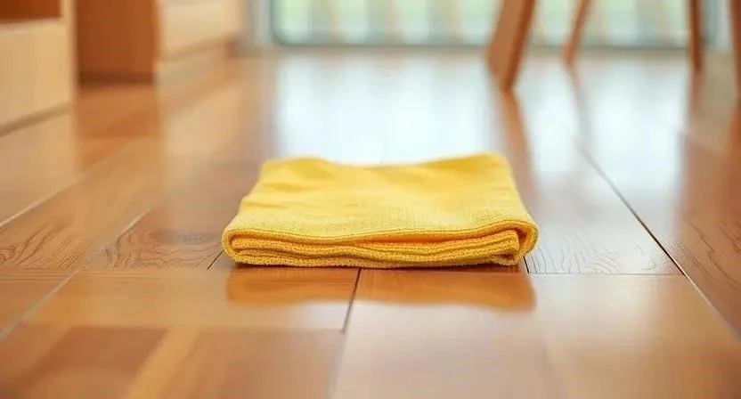 - Если на полу остались капли воды, сразу протрите их сухой микрофиброй.
