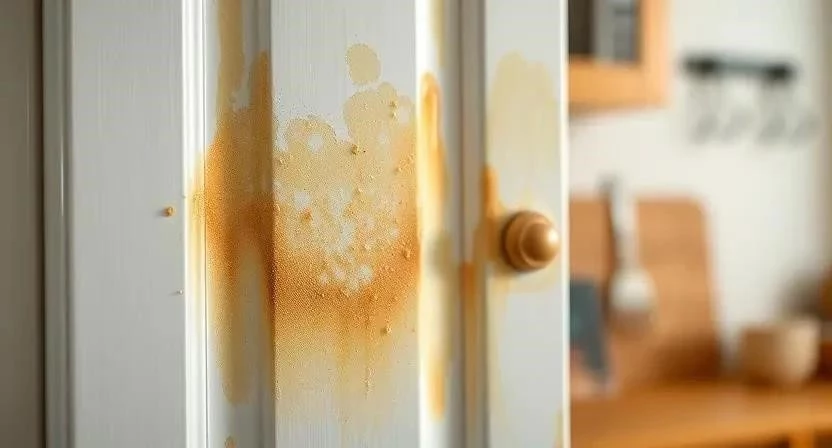 Жир на кухонных шкафах появляется из-за испарений масла при жарке, брызг при готовке и просто переноса жира с рук. Он трудно удаляется, так как обладает липкой структурой и проникает в поры материала. Чем дольше жир остается на поверхности, тем сложнее его отмыть, поэтому регулярная уборка – лучший способ избежать серьезных загрязнений.