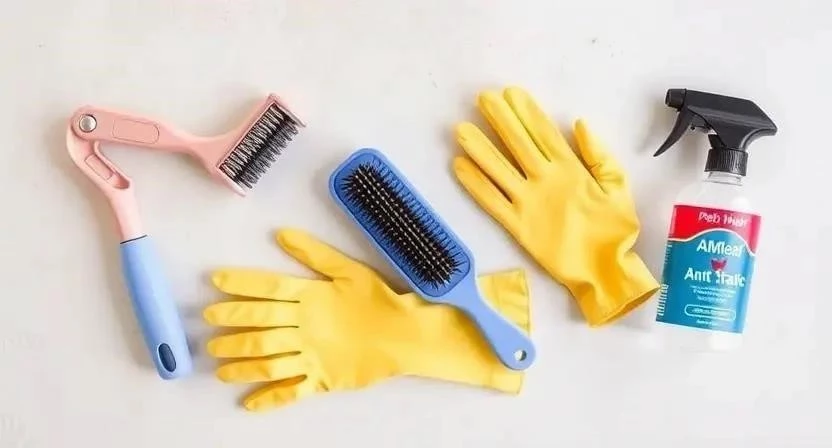 - Резиновые перчатки: собирают шерсть в комки.