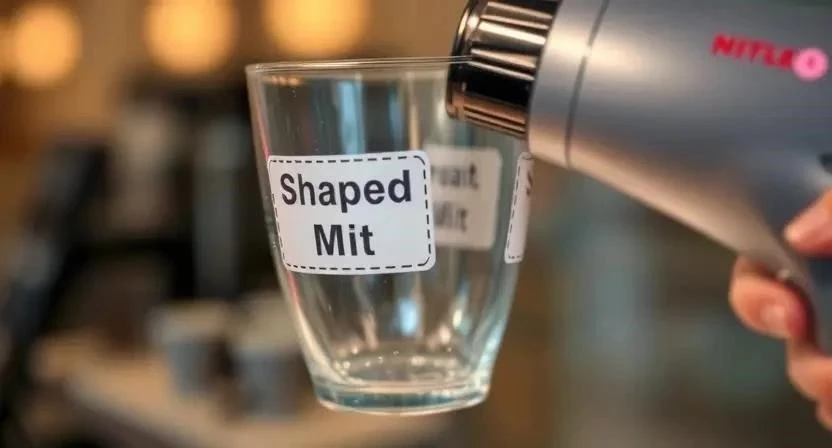 - Направьте теплый воздух на наклейку на расстоянии 10-15 см.