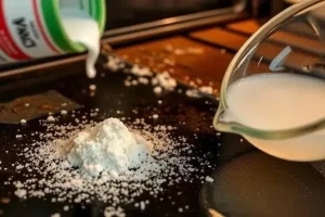 - Обильно посыпьте пятно содой, чтобы полностью покрыть его.