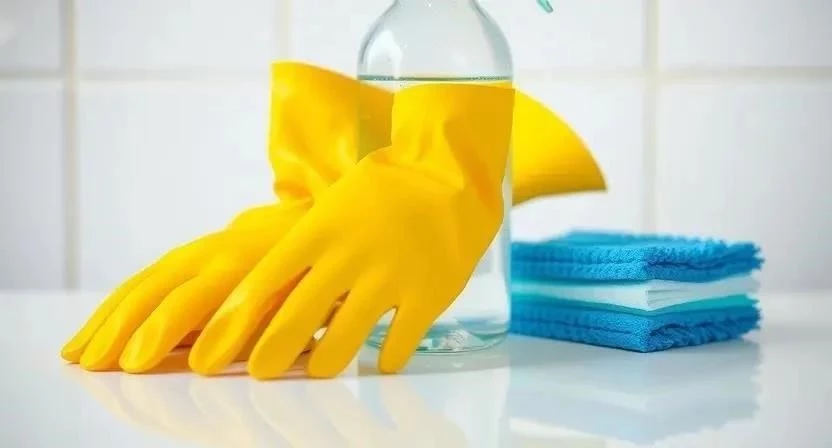 - Всегда используйте защитные перчатки при работе с бытовой химией.