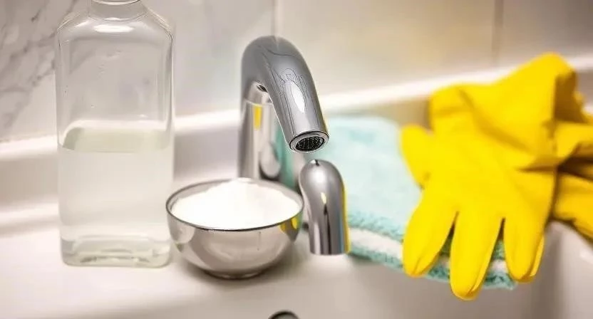 Лайфхак 3: Очистка кранов от налета уксусом