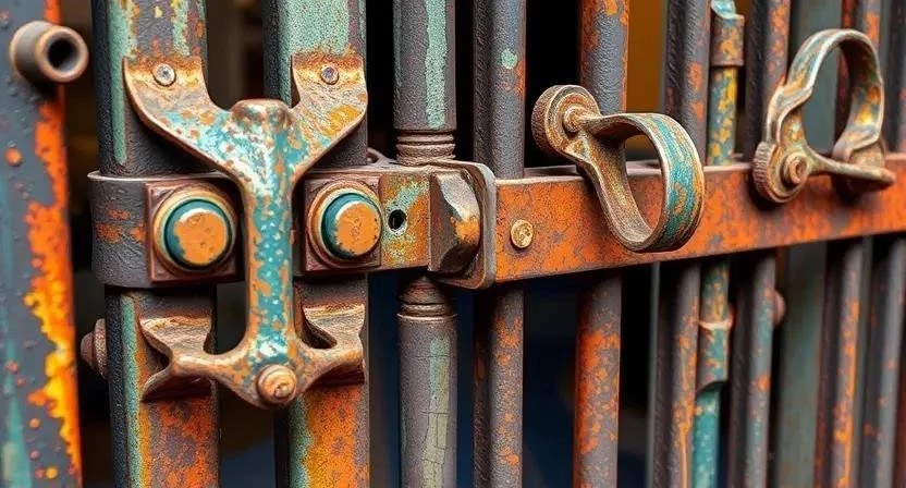 Петли, замки и ручки также нуждаются в уходе. Очищайте их от грязи и пыли, смазывайте подвижные части. Проверяйте состояние крепежных элементов и при необходимости затягивайте их. Если замок заедает, смажьте его специальным маслом для замков.