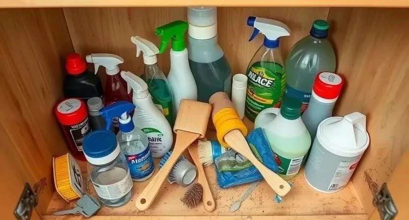 Новички часто допускают следующие ошибки при уборке шкафа для бытовой химии:
