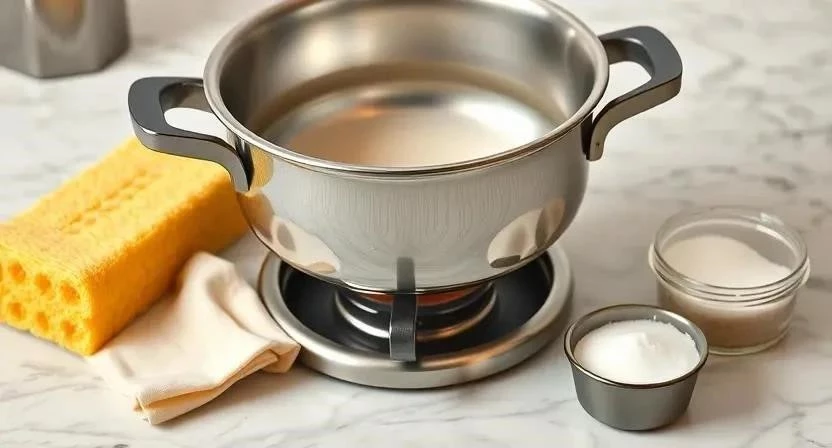 - Очистка от пригоревшего сыра: Наполните фондюшницу водой, добавьте 2-3 столовые ложки соды и прокипятите в течение 15-20 минут. Затем аккуратно потрите загрязненные участки губкой или щеткой.