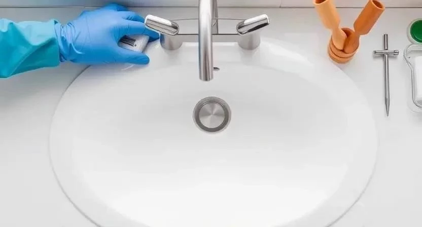 - Подготовьте раковину: удалите все предметы с раковины и тщательно промойте ее водой.