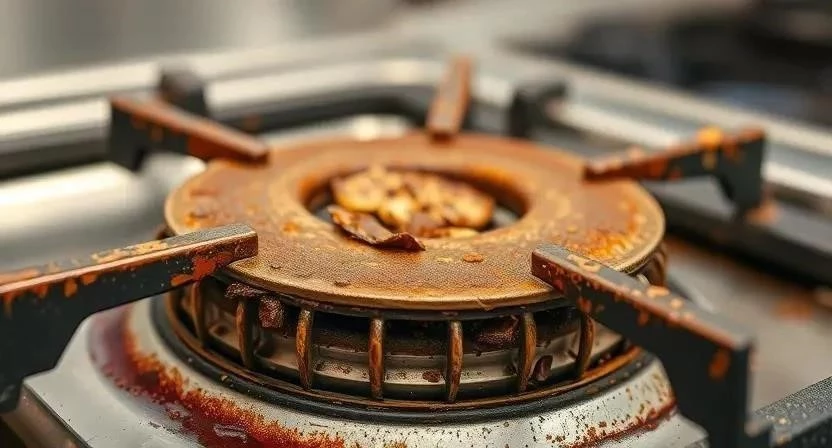 1. Газовая плита: Снимите решетки и конфорки. Нанесите пасту из соды и воды на загрязненные участки. Оставьте на 15-20 минут, затем протрите губкой.
