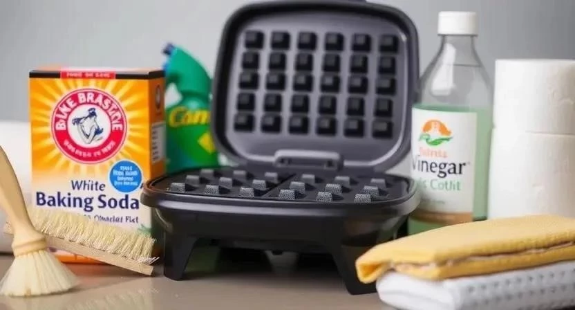 Уксус отлично справляется с жиром и дезинфицирует поверхность. Смешайте уксус с водой в равных пропорциях. Нанесите раствор на загрязненные участки вафельницы и оставьте на 30 минут. Затем потрите губкой и смойте теплой водой. Я использую уксус для чистки вафельницы раз в месяц, чтобы предотвратить накопление жира. Уксус также помогает удалить неприятные запахи.