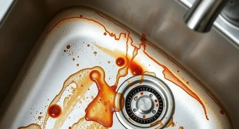 Ответ: Используйте соду или специализированный очиститель для нержавеющей стали. Нанесите средство, оставьте на несколько минут, затем тщательно промойте.