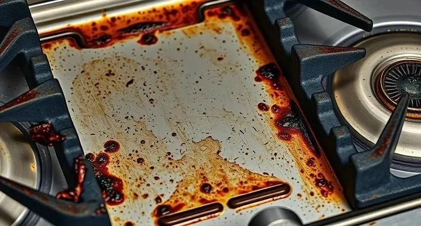 Ответ: Используйте пасту из соды или специализированное средство для удаления жира. Нанесите средство на поверхность, оставьте на 20-30 минут, затем протрите губкой или тряпкой.