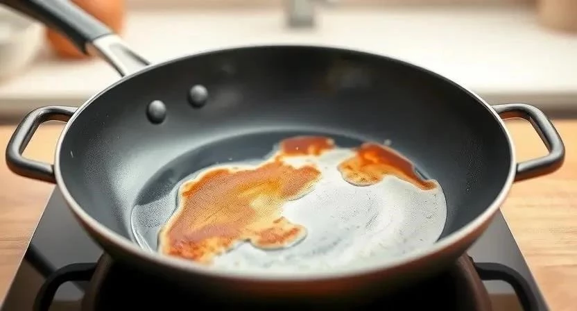 Ответ: Протрите сковороду уксусом, затем промойте водой и просушите. После этого смажьте сковороду маслом и прокалите в духовке.