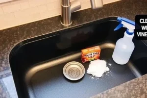 - Уксус: Разведите уксус с водой в соотношении 1:1 и используйте для очистки фартука, раковины и других поверхностей.