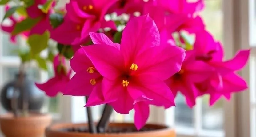 Ответ: Зимой бугенвиллию содержат в прохладном месте (15-18°C), сокращают полив и подкормку. При необходимости обеспечивают дополнительное освещение.