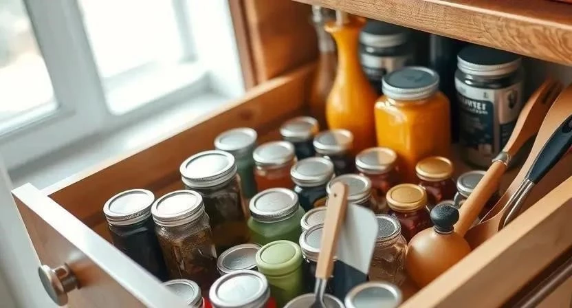- Используйте разделители в ящиках, чтобы организовать столовые приборы и кухонные принадлежности.