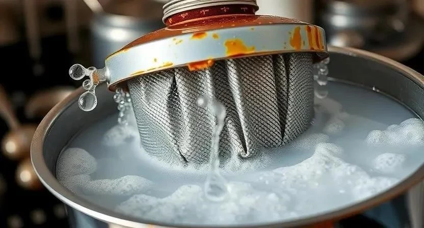 - Металлические фильтры: Замачивайте в горячей воде с моющим средством или содой. Используйте щетку для удаления стойких загрязнений.