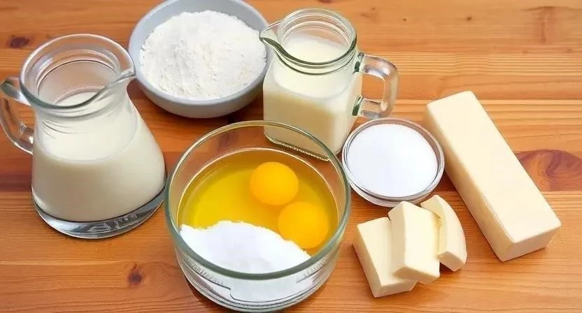 Чтобы блины получились действительно тонкими и нежными, важно правильно подготовить ингредиенты. Молоко должно быть теплым, но не горячим. Яйца лучше достать из холодильника заранее, чтобы они стали комнатной температуры. Муку необходимо просеять, чтобы она насытилась кислородом и не было комочков. Я всегда тщательно просеиваю муку, это заметно улучшает текстуру теста.