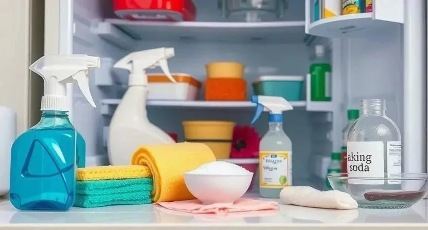 - Дезинфекция: Протрите все поверхности холодильника раствором лимонной кислоты (1 столовая ложка на литр воды) или специальным дезинфицирующим средством для холодильников.