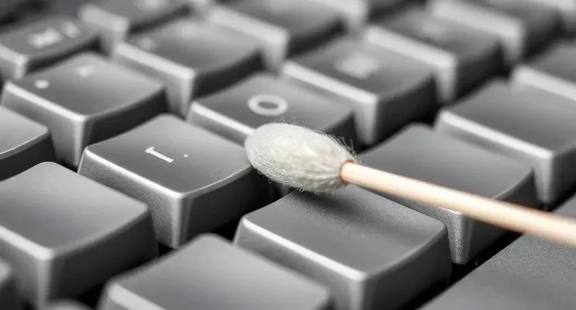 Чистка клавиатуры ватными палочками: Удаление загрязнений из труднодоступных мест