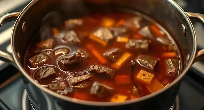 Начнем с приготовления бульона – это основа нашего борща. Мясо заливаем холодной водой (примерно 3 литра) и ставим на сильный огонь. Доводим до кипения, снимаем пену. Уменьшаем огонь до минимума, добавляем лавровый лист и перец горошком. Варим бульон не менее 2-3 часов, а лучше – 4-5 часов, чтобы он получился максимально наваристым. Я помню, как моя бабушка всегда говорила: «Чем дольше варится бульон, тем вкуснее будет борщ!». В процессе варки бульон нужно периодически снимать пену, чтобы он был прозрачным.