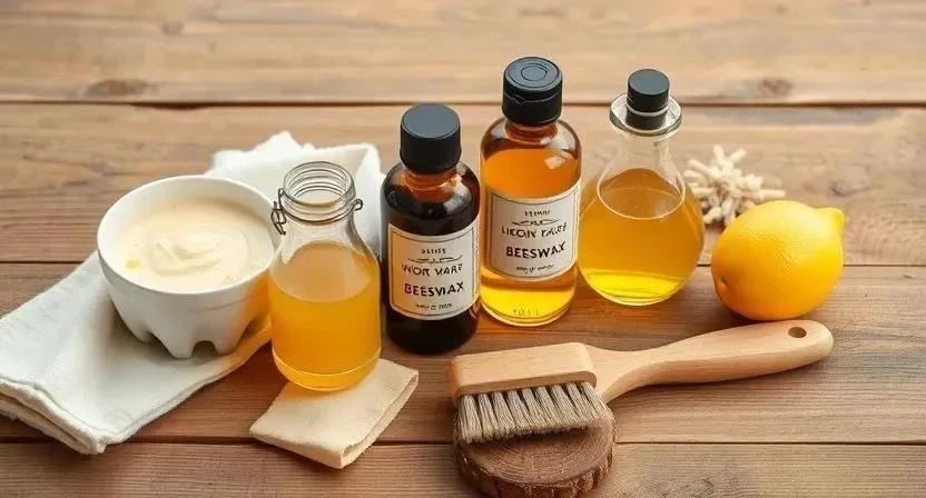 Ответ: Можно использовать уксус, воду, оливковое масло, лимонный сок, чайную заварку и специальные средства для ухода за деревом.