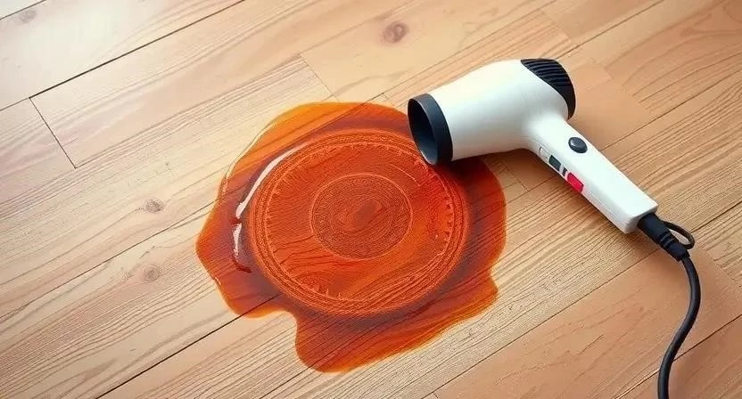 Почему это работает? Теплый воздух испаряет влагу из дерева, предотвращая образование пятен. Важно не перегреть поверхность, чтобы не повредить ее.