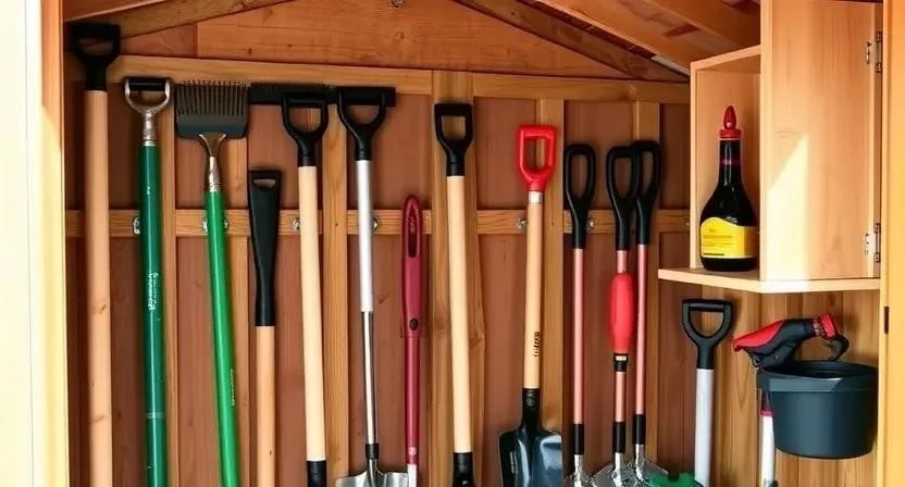Ответ: Используйте сараи, гаражи или специальные стеллажи. Важно, чтобы инструменты были защищены от коррозии и влаги.