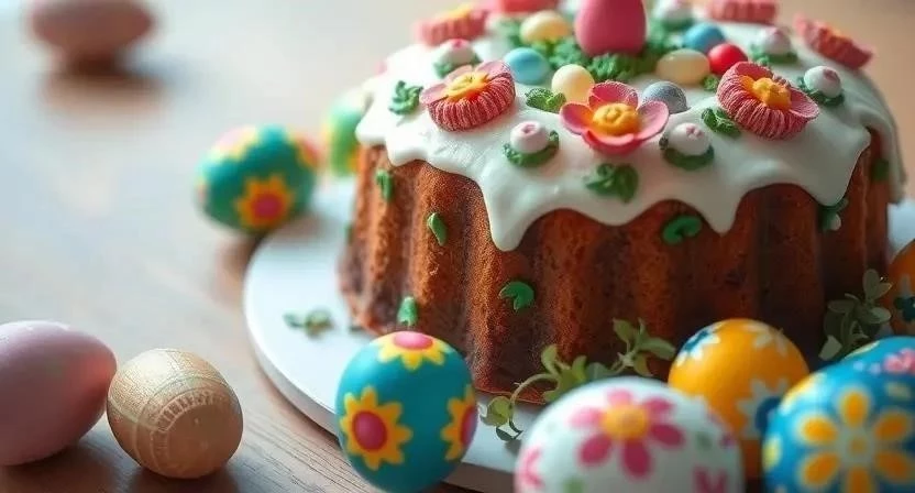 - Пасхальный чизкейк: Чизкейк с добавлением творога и фруктов, украшенный пасхальной символикой.