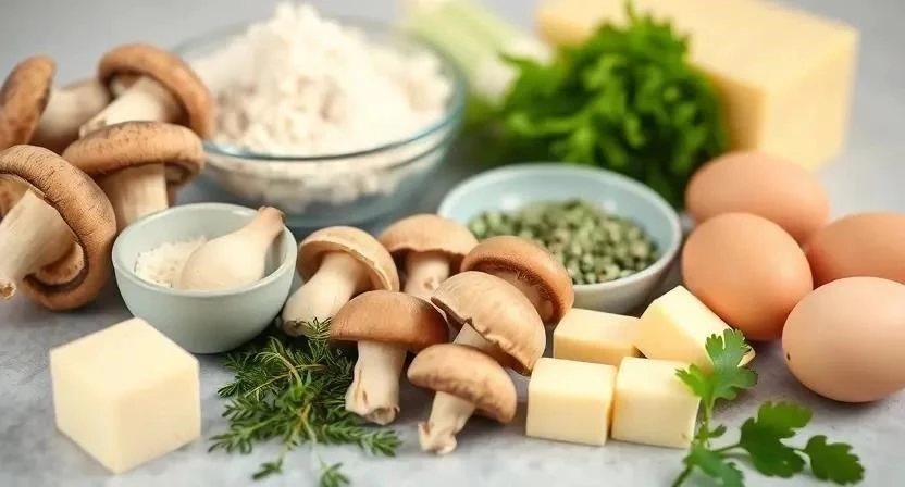 Для этого рецепта нам понадобится: 500 г слоеного теста, 300 г шампиньонов, 1 крупная луковица, 100 г твердого сыра, 2 столовые ложки растительного масла, 100 мл сливок, соль, перец – по вкусу, щепотка мускатного ореха (по желанию). Я всегда стараюсь использовать качественное слоеное тесто, чтобы пирог получился особенно воздушным.