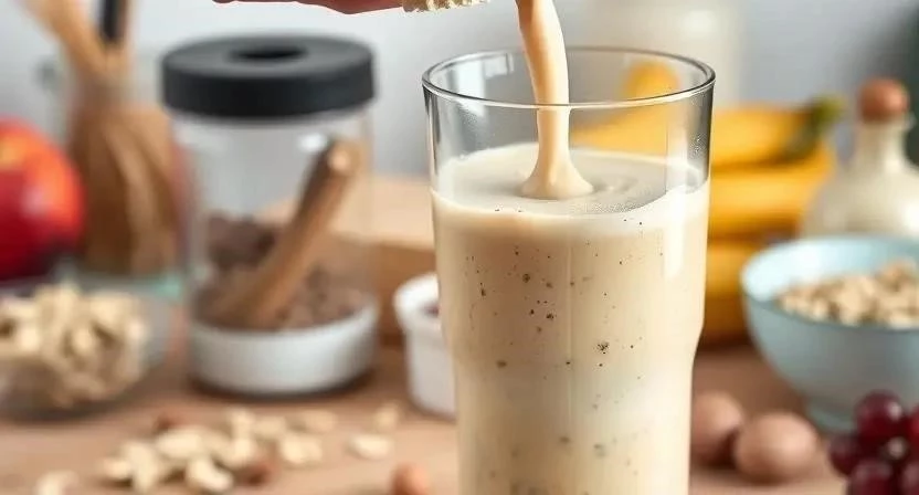 - Протеиновый коктейль с бананом и молоком: 30 г протеина, 1 банан, 200 мл молока. Калорийность: 300 ккал, БЖУ: 30г/5г/5г.