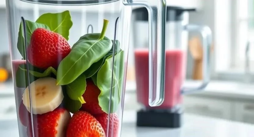 - Положите в блендер фрукты, ягоды, овощи, йогурт или молоко.