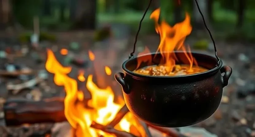 - Используйте правильную посуду. Для готовки на костре лучше всего подходит чугунная посуда.