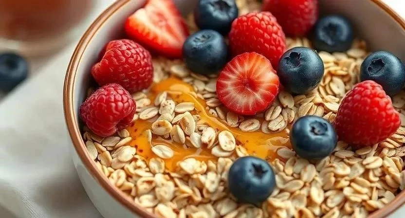 - Овсяная каша с ягодами и орехами: Сварите овсянку на воде или молоке, добавьте свежие или замороженные ягоды и горсть орехов.