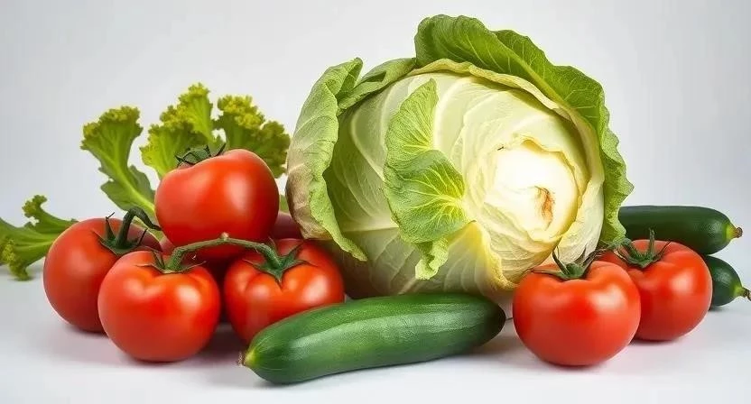 - В большой миске соедините капусту, помидоры, огурцы и зелень.