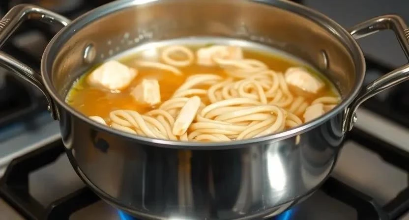 - Добавление вермишели: Всыпьте вермишель в кипящий суп и варите согласно инструкции на упаковке (обычно 5-7 минут).