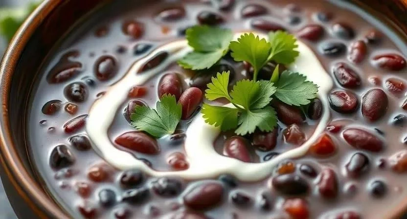 | Суп из черной фасоли | Черная фасоль, лук, чеснок, овощной бульон, кумин, кайенский перец, соль, зелень, сметана (по желанию) |