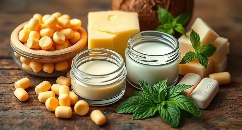Для приготовления домашнего бальзама понадобятся базовые ингредиенты, которые обеспечат увлажнение, питание и защиту губ. Масла – кокосовое, оливковое, миндальное, жожоба – смягчают и увлажняют кожу губ. Воск – пчелиный или карнаубский – создает защитный барьер, предотвращая потерю влаги. Масла ши и какао – питают и восстанавливают кожу губ, делая ее более гладкой и эластичной. Витамины – Е и А – обладают антиоксидантными свойствами, защищая кожу от свободных радикалов. Эфирные масла – мята, лаванда, ромашка – придают бальзаму приятный аромат и оказывают терапевтическое воздействие.