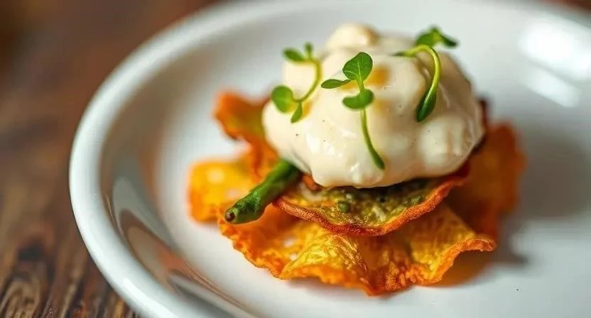 Использование чипсов из овощей, хлебных гренок или плиток пармезана как базы для микро-блюда – это отличный способ добавить интерес. Однажды я подал тартар из лосося на хрустящей картофельной чипсе, и это произвело фурор! Контраст текстур делает блюдо более запоминающимся.